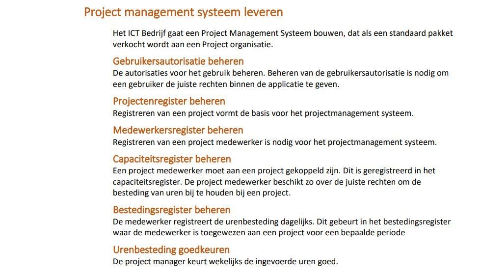 Voorbeeld een Project Management Systeem leveren